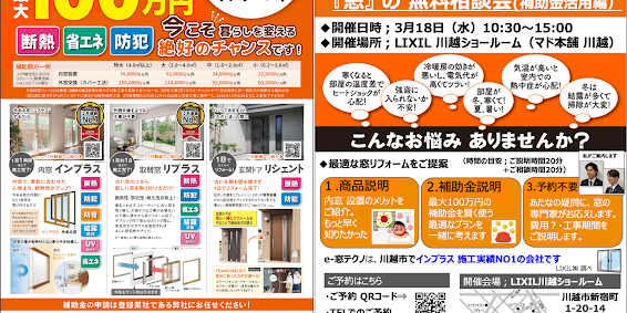 補助金で賢く、快適に!「窓」の無料相談会|e-窓テクノ 浦和|さいたま市浦和区